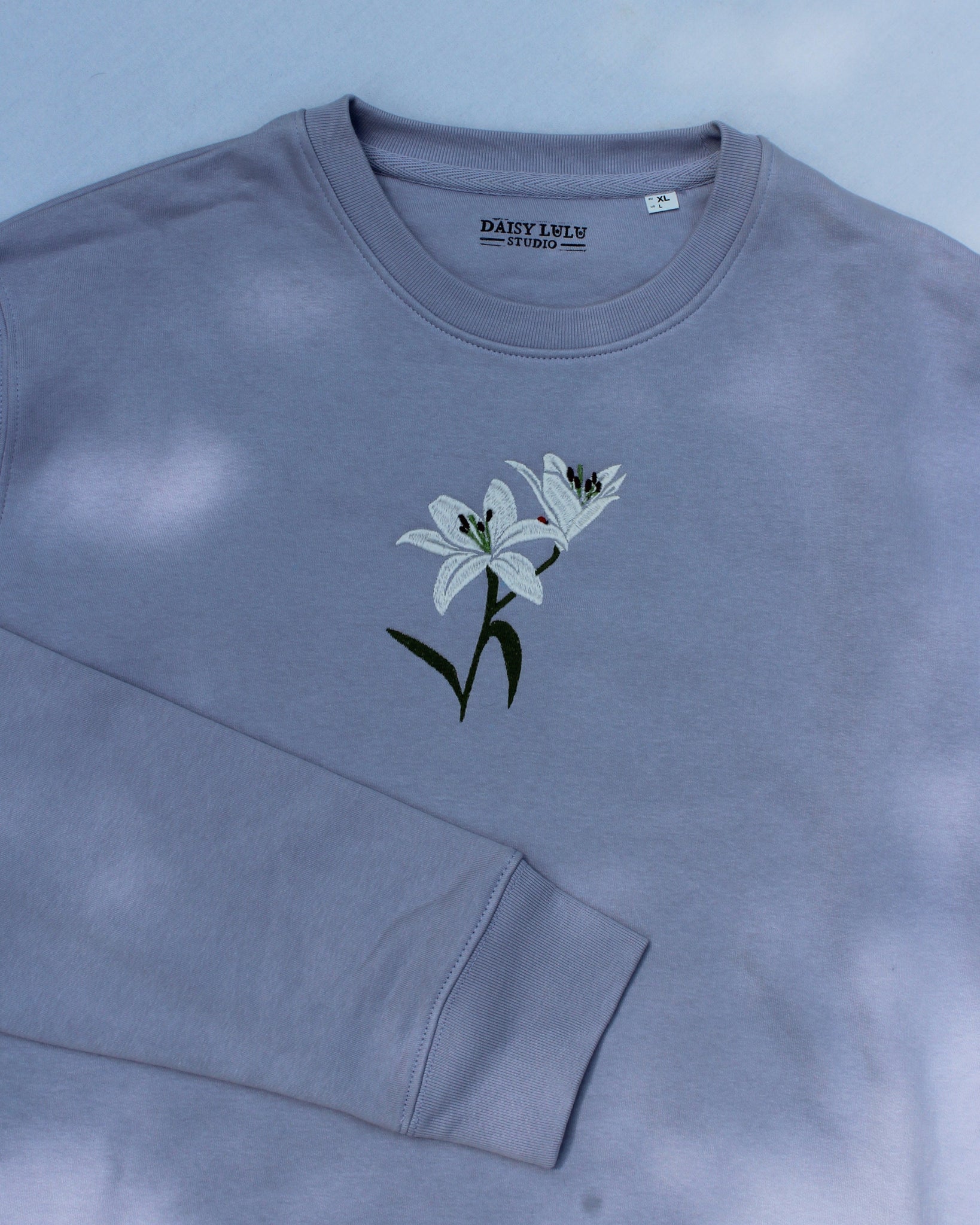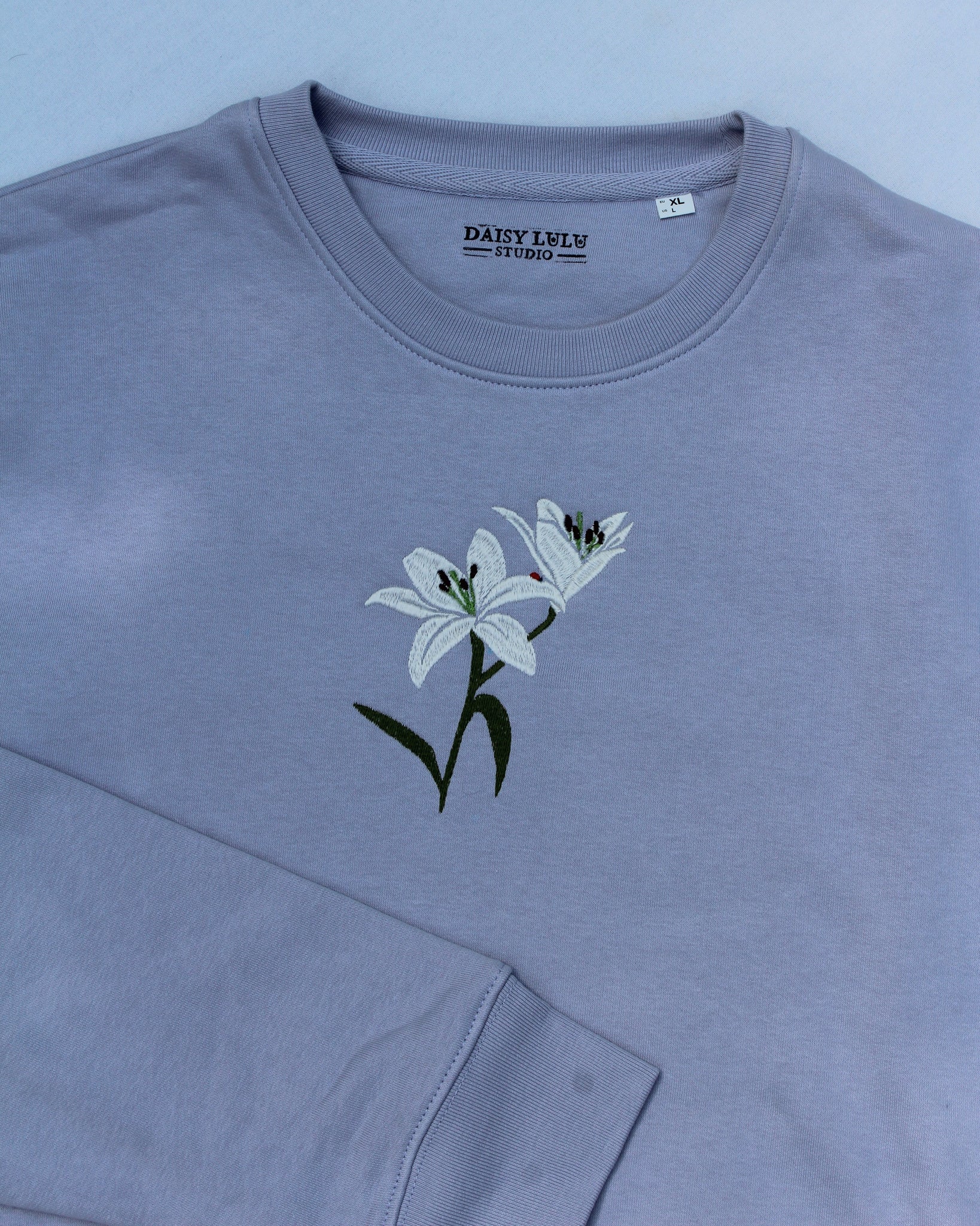 Lily Embroidered Crewneck - Lilac Organic Cotton